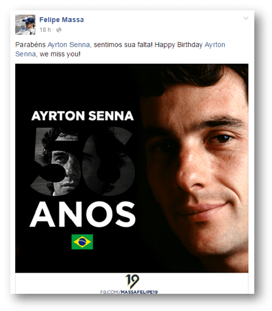 Em agradecimento a lembrança dos fãs, aproveitamos para fazer um apanhado geral das homenagens mais bacanas que foram feitas para o nosso campeão, com ênfase para as páginas: McLaren, Turma da Mônica, Corinthians, Sportv, SBT, Quatro Rodas, Lancenet!, Gustavo Kuerten, Felipe Massa e Forbes Brasil.
