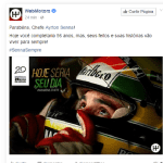 Ayrton Senna completaria 56 anos no último dia 21 e o tricampeão mundial de F-1 foi um dos principais destaques das redes sociais ao receber diversas homenagens de fãs, personalidades, jornais e outras páginas.