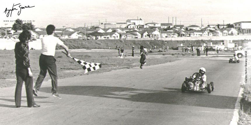 Ayrton venceu sua primeira corrida de kart em julho de 1973, quando tinha apenas 13 anos de idade. O palco desta vitória foi o antigo Kartódromo de Interlagos, que hoje leva o nome de Kartódromo Ayrton Senna, localizado atrás da antiga reta oposta do autódromo paulistano.