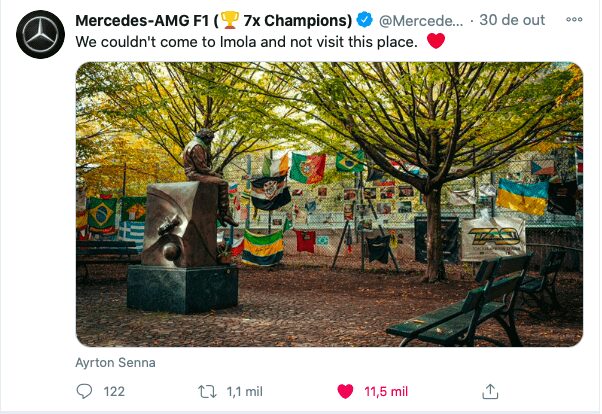 O brasileiro Pietro Fittipaldi, piloto reserva da Haas, foi até o local das homenagens. “O maior campeão de todos. Ayrton Senna é um ídolo para mim e para muitos. Sua memória e legado viverão para sempre”, declarou o neto de Emerson Fittipaldi nas redes sociais.
