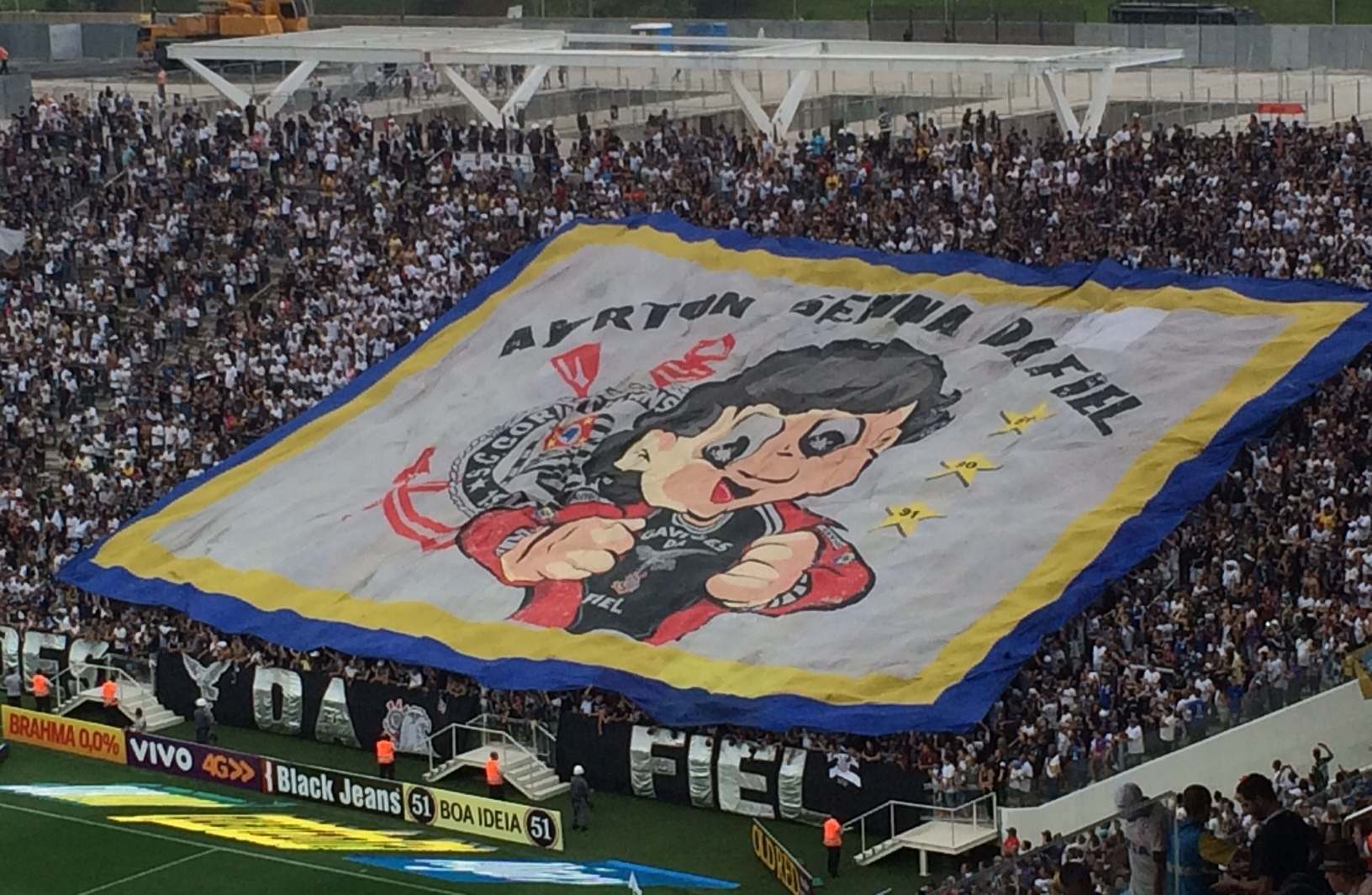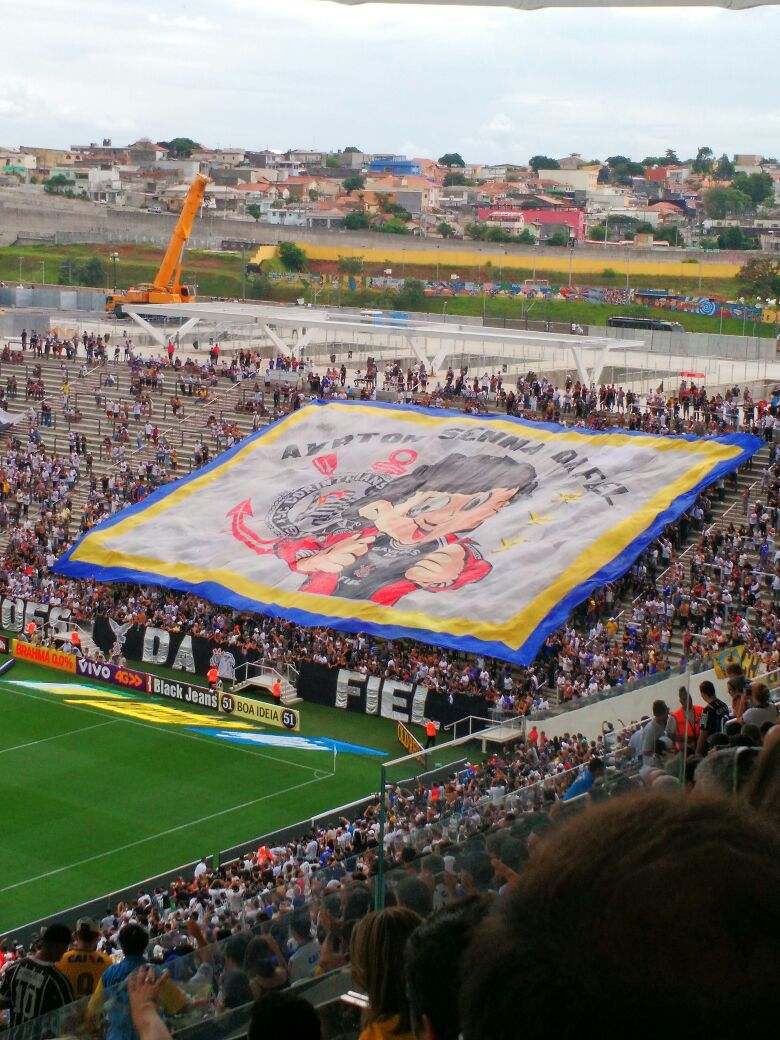 No último sábado (14), Ayrton Senna foi homenageado pelo Corinthians, em seu estádio, antes da bola rolar para o jogo do time mandante contra o Red Bull Brasil pelo Campeonato Paulista. A partida terminou em 0 a 0, mas nem por isso deixou de ser emocionante. Juntamente com as equipes perfiladas no gramado para o hino nacional, estava o personagem Senninha, além de várias crianças que carregavam a placa #SennaSempre .