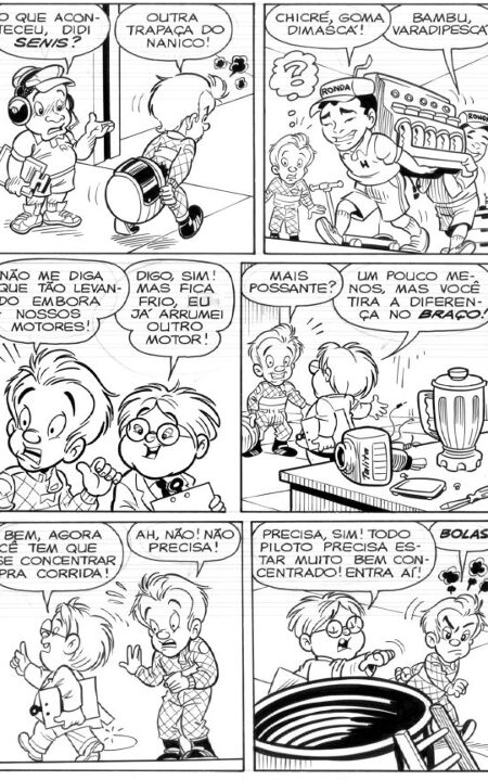 O personagem é um talentoso piloto-mirim, que enfrenta um garoto trapaceiro e narigudo, que é seu principal rival nas pistas,  uma alusão a Alain Prost. Nos quadrinhos, todos os personagens dos Trapalhões aparecem na história que lembra os duelos do piloto brasileiro com o francês.