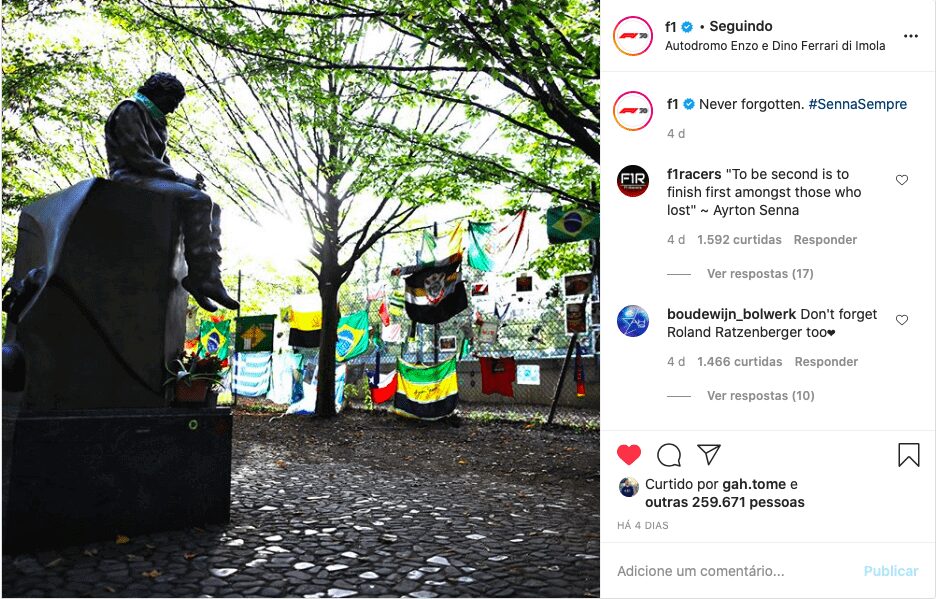 Teams and other F1 drivers also published several tributes on social networks, attending the memorial dedicated to Senna at the Autodromo Internazionale Enzo and Dino Ferrari, located behind the Tamburello turn, where there is a statue of the driver.