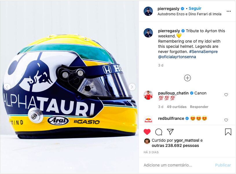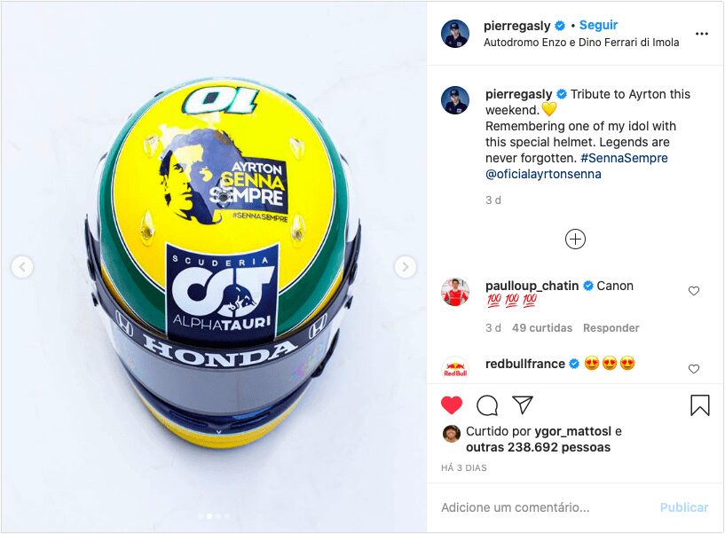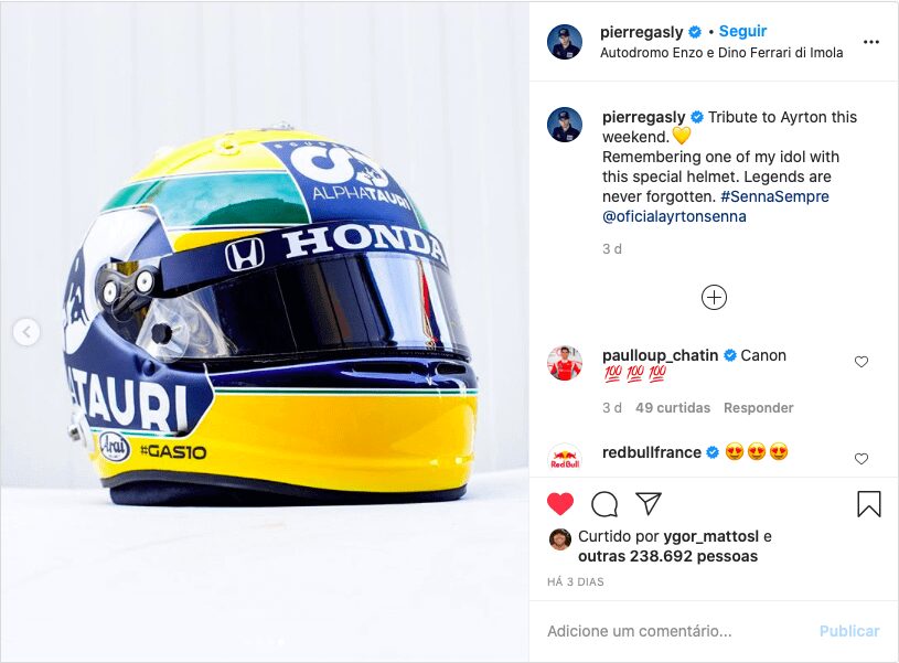 The weekend of the Emilia-Romagna Formula One Grand Prix held in Imola, Italy, was marked by several tributes to Ayrton Senna. The most iconic of them was made by Frenchman Pierre Gasly, Alpha Tauri driver, who styled his helmet with a painting similar to that of the three-time F1 world champion.