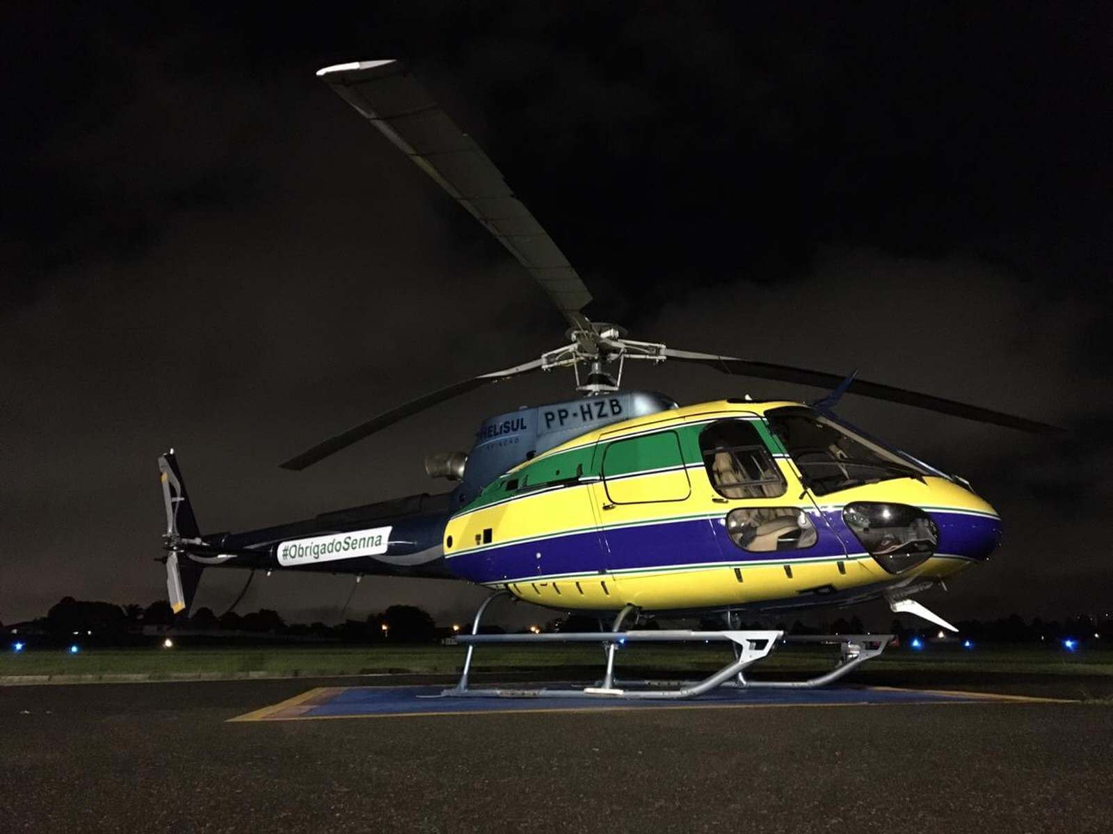The helicopter of the official F1 broadcast was covered in the iconic colors of Ayrton Senna’s helmet. The Aerial footage of the race were generated by the helicopter’s camera, as it flew over Interlagos for three days, covering the event.