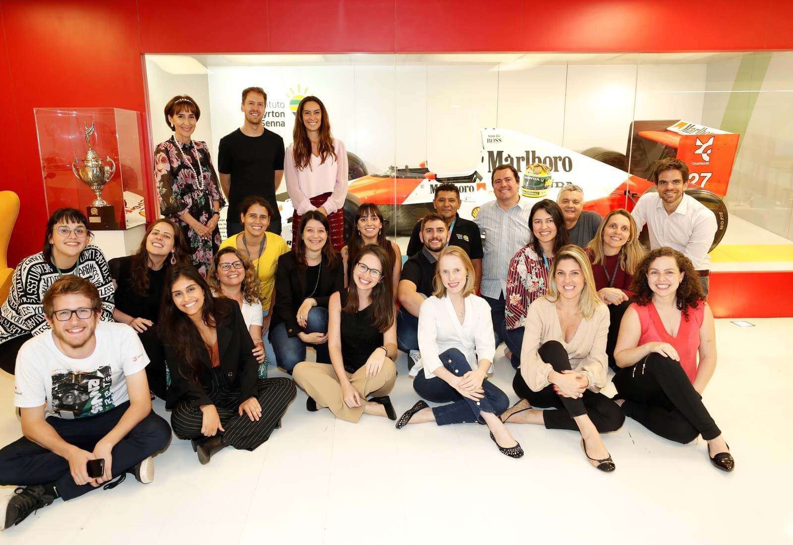 During the week of the Brazilian F1 GP, the four-time F1 champion, Sebastian Vettel, made a “surprise” appearance at the Ayrton Senna Institute, in São Paulo. The German, currently a Ferrari driver, was able to see up-close several of Ayrton’s historic items, including the 1990 McLaren with which Senna won his second world title.