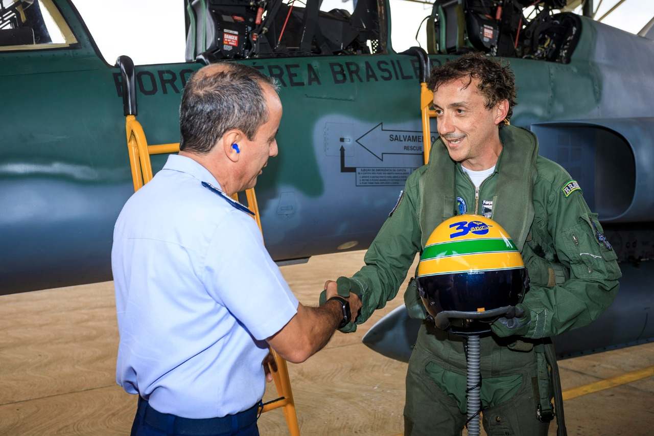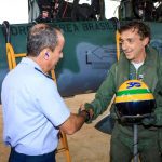 Leonardo Senna represented the greatest idol in Brazilian motor sports and flew on a fighter jet. Ayrton’s brother also wore a special helmet, with the same color scheme of the one the F1 three-time champion used to wear.