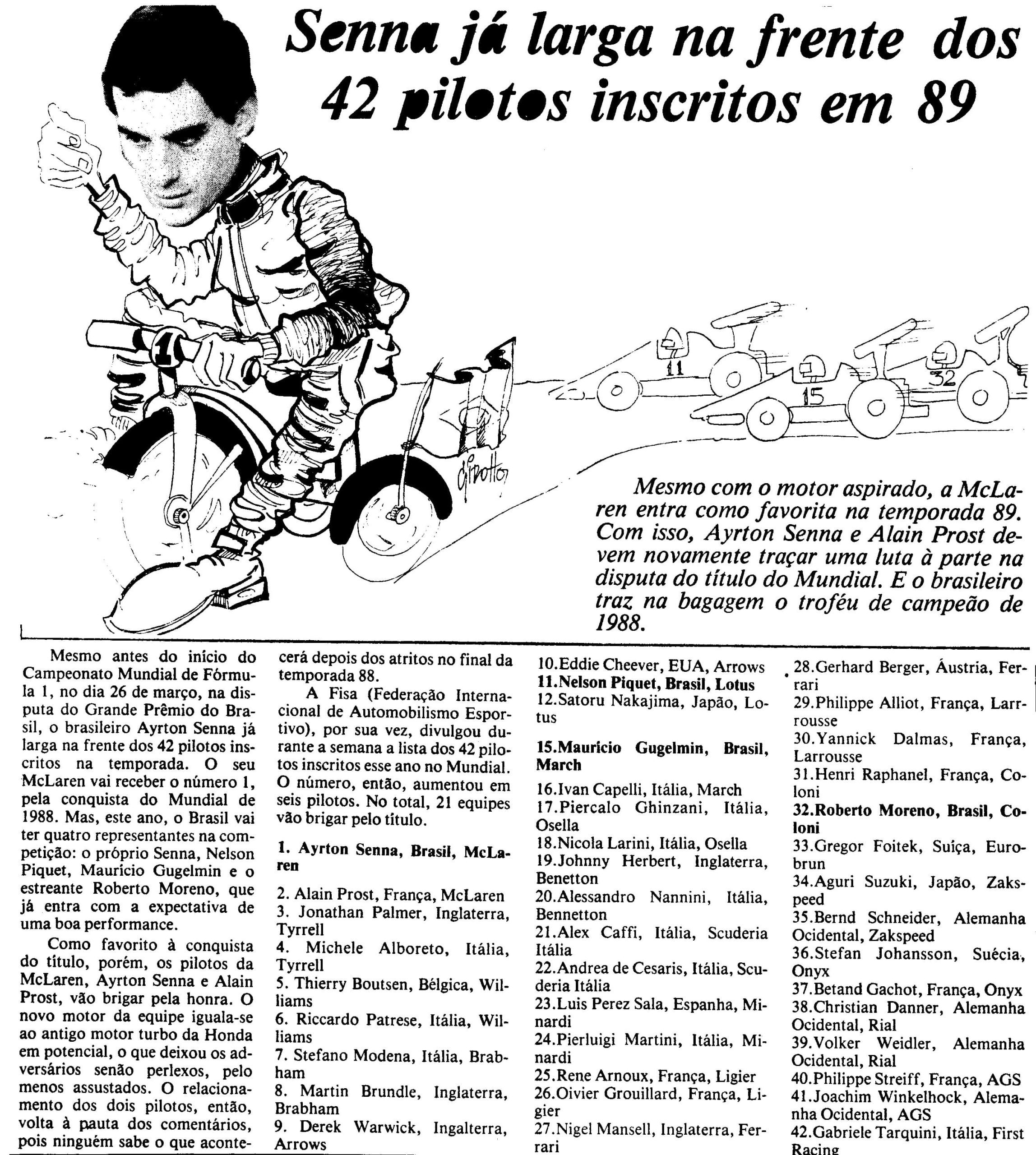 Check out the names of all 42 drivers registered for the 1989 F1 season in a newspaper article (portuguese) from back then.