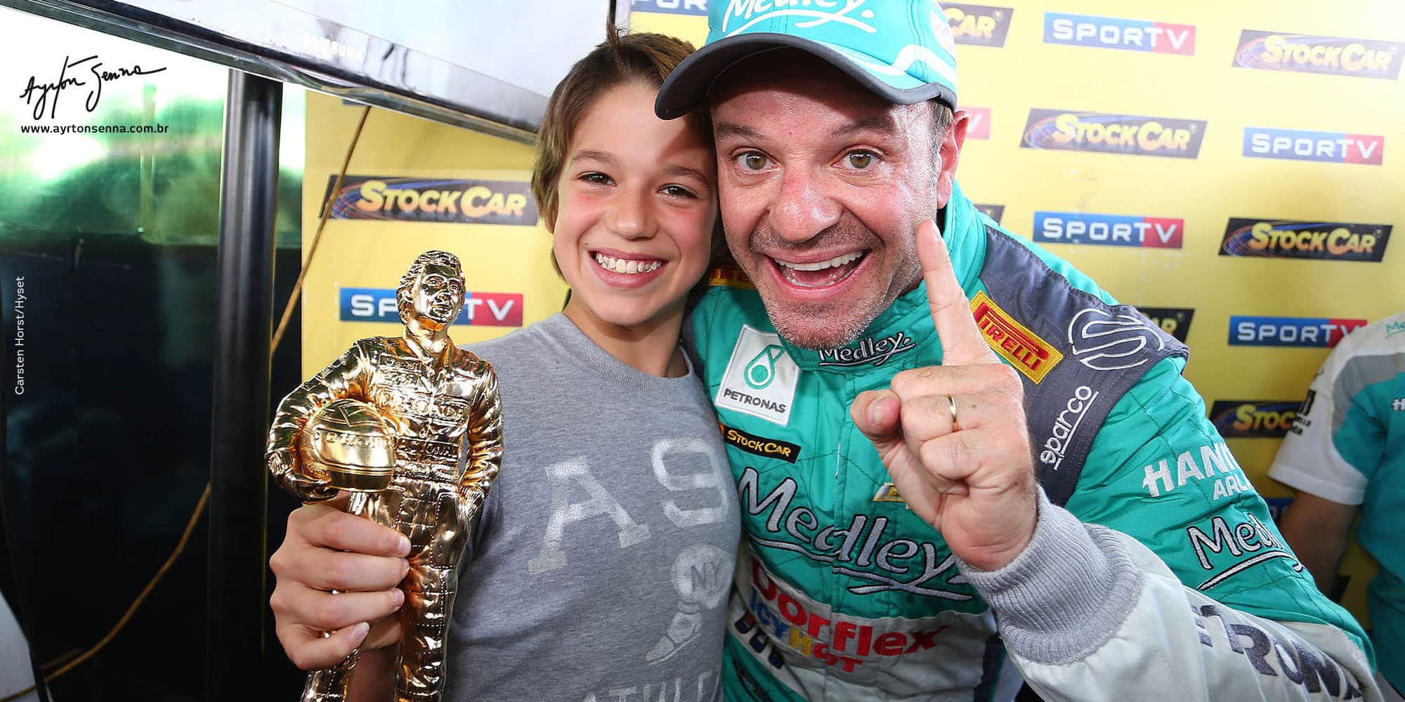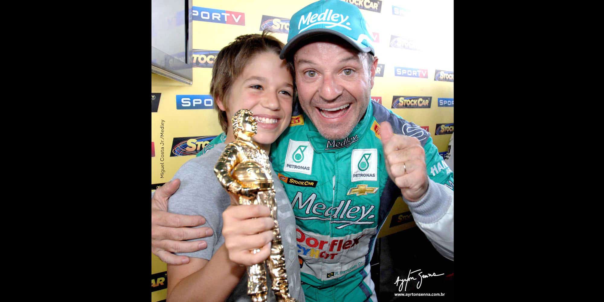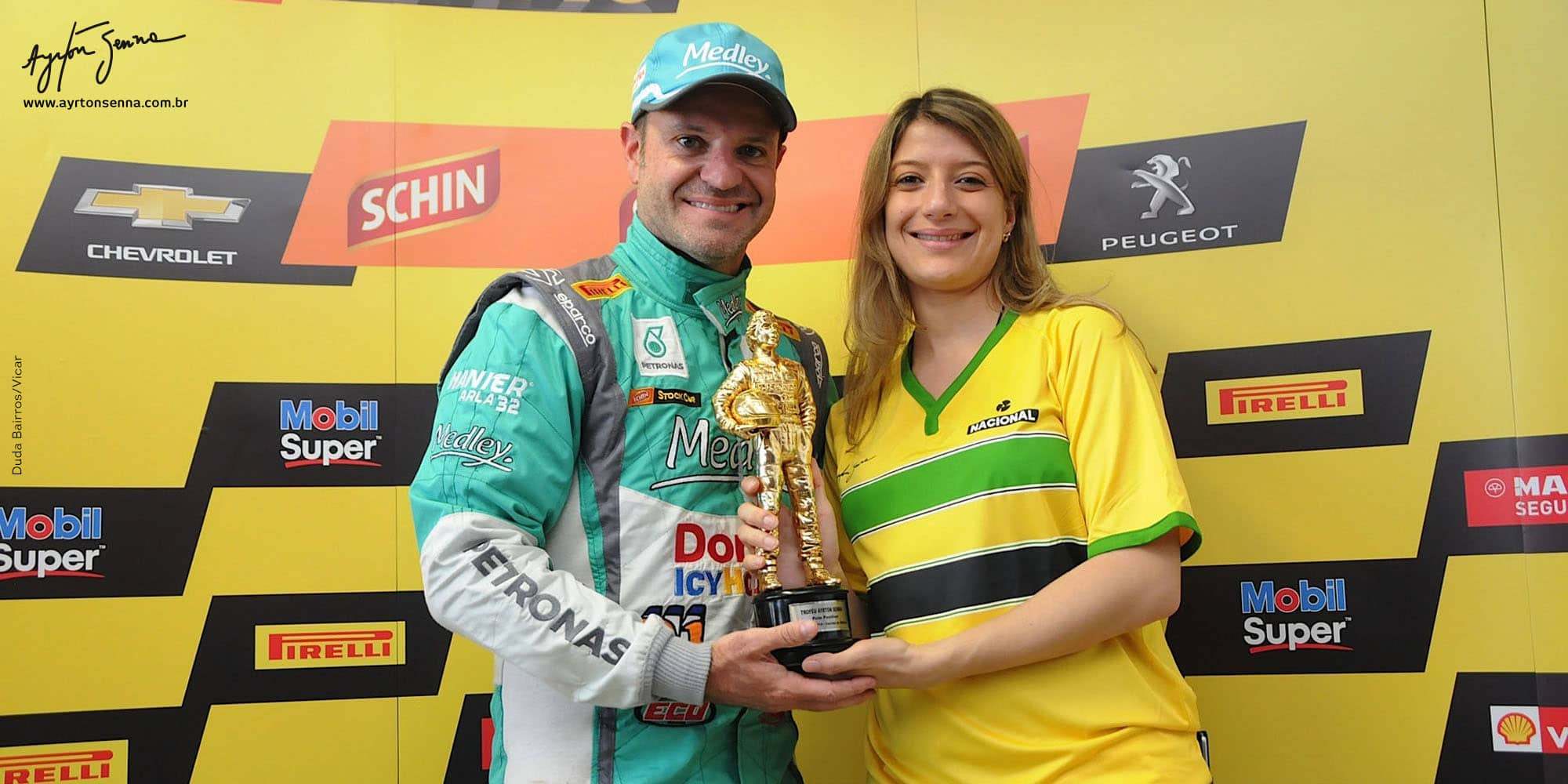 Besides winning the “Million Reais Race”, Rubens Barrichello took home another major trophy for his collection. By scoring the pole position in the special Stock Car event, the driver was given a gilded Ayrton Senna statue, created by artist Wilson Iguti.