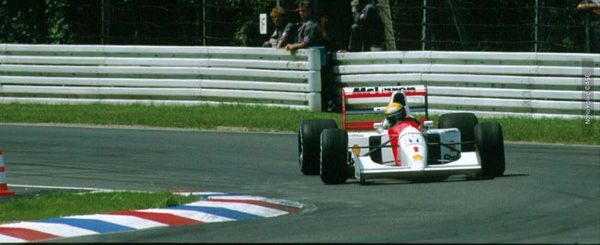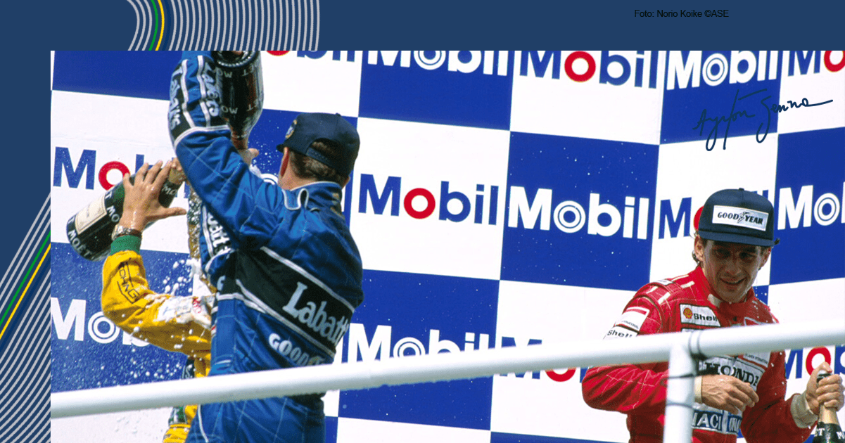 As the only driver among the three of them who already had a world title, Senna started in third place with his McLaren. The first row was taken up by Mansell’s and Riccardo Patrese’s Williams. In order to be able to compete with them, Senna went with a daring strategy: he didn’t stop to change tires. Mansell and Patrese did, but only the “Lion” managed to come back from the pit-stop ahead of Senna.
