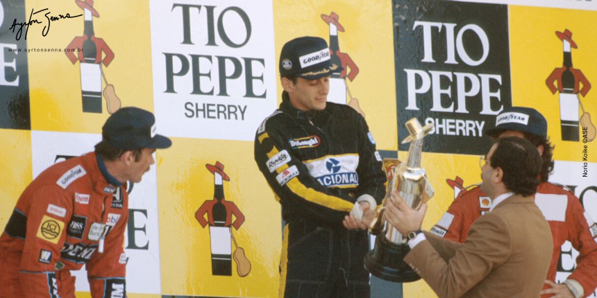 Estava reservada a Ayrton Senna no circuito de Jerez de la Frontera, uma de suas mais espetaculares vitórias da Fórmula 1. Contra as Williams de Nigel Mansell e Nelson Piquet e as McLaren de Alain Prost e Keke Rosberg, o piloto brasileiro voou baixo e cravou um tempo que superava os adversários em praticamente um segundo: 1m21s605 (média horária de 186 km/h).
