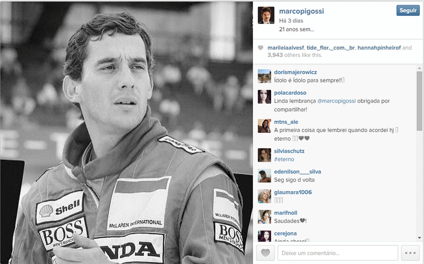 Confira a galeria com os principais posts e deixe nos comentários outras publicações que lembraram o legado de 21 anos deixado pelo mito das pistas.