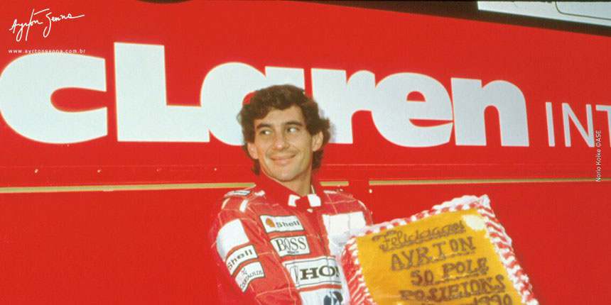 Ayrton Senna conquistou 65 poles positions ao longo de sua carreira na F-1 e várias delas possuem histórias de muita superação, onde o piloto brasileiro desafiou o seu limite e o do carro para conseguir conquistar o primeiro lugar. Em 29 de setembro de 1990, Senna fez a pole position em Jerez de la Frontera com direito a quebra de recorde do circuito e ainda ganhou um bolo de presente da equipe McLaren por ter feito sua 50ª pole na F-1.