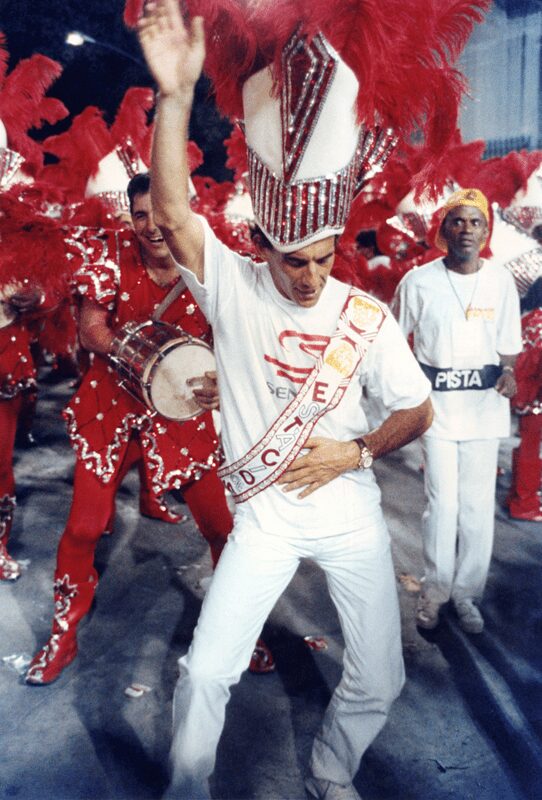 Em 1992, os integrantes da Estácio de Sá faziam a festa na Sapucaí quando Ayrton Senna apareceu e surpreendeu a todos na Avenida. O tricampeão pulou a grade, vestiu a faixa de campeão e dançou em frente aos ritmistas: um verdadeira padrinho de bateria.