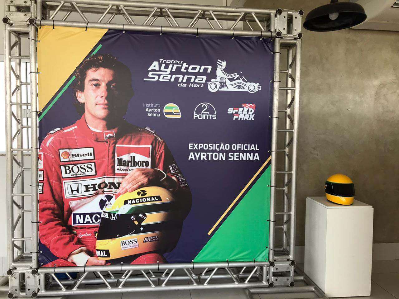 Os visitantes poderão ver de perto uma bancada com seis capacetes usados por Ayrton, seis troféus, um macacão de 1993 da McLaren, além de uma réplica do primeiro kart que Senna ganhou de seu pai, ainda com apenas 4 anos.