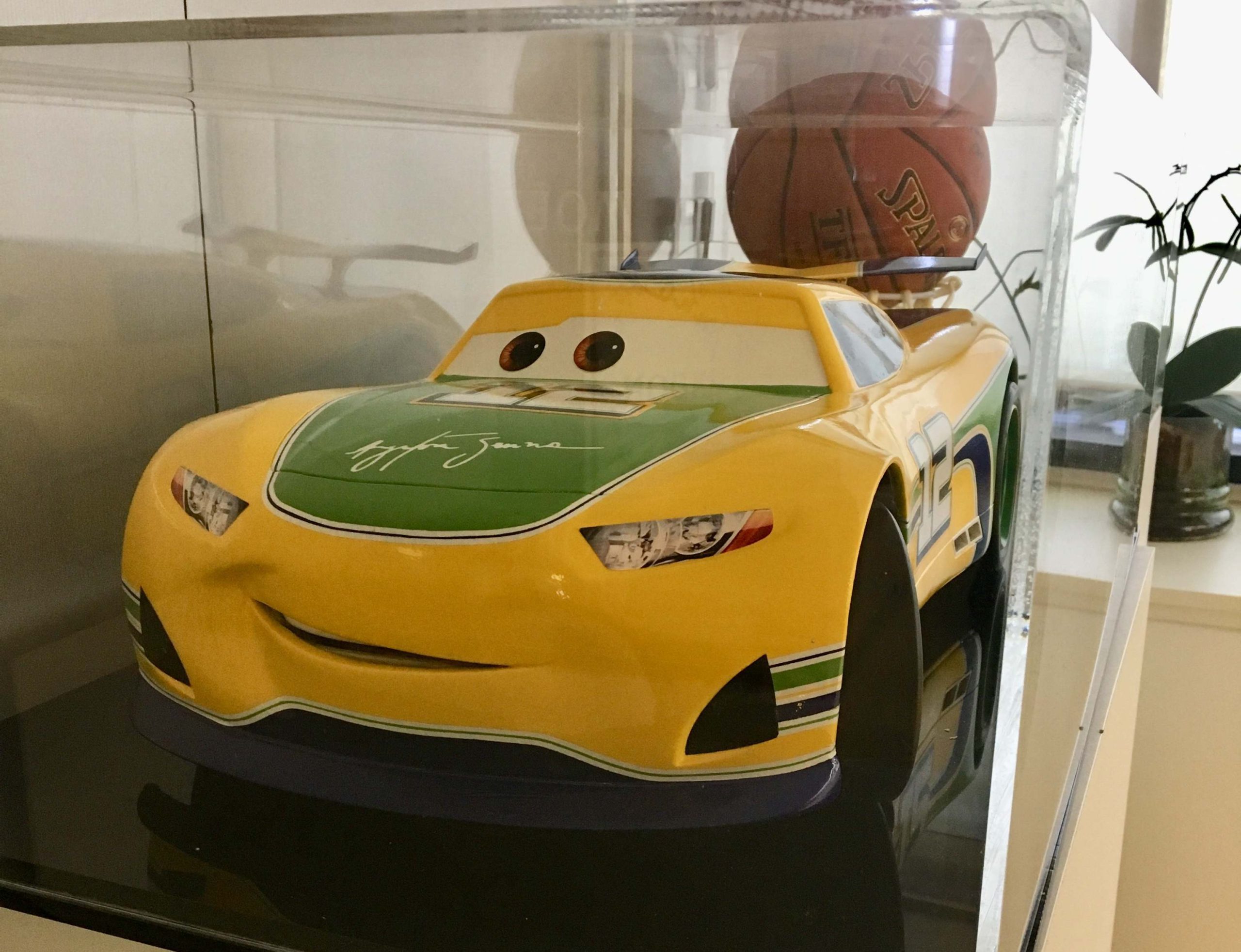 A Disney Pixar, produtora do filme Carros 3, homenageou o tricampeão Ayrton Senna com a criação de uma miniatura especial para o piloto quando realizou o lançamento do filme no Brasil. Nesta quarta-feira (29), Claudia Neufeld (diretora de marketing da Disney) e Thereza Pestana (gerente de marketing) , foram até ao Instituto Ayrton Senna para entregar a miniatura customizada com as cores icônicas do capacete do piloto brasileiro.